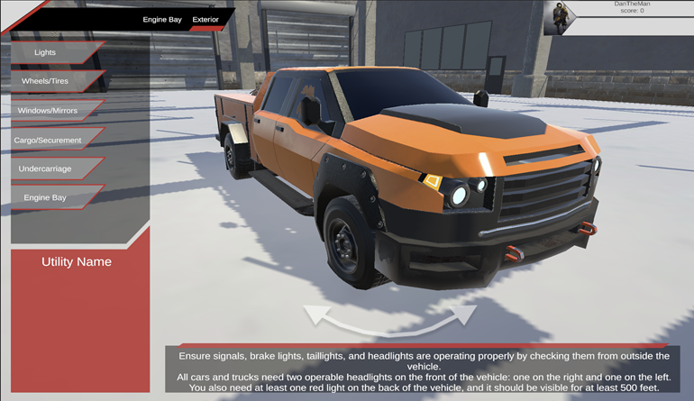 Our curriculum features a series of simulations designed to instruct user in the basics of Detection, Defensive Driving and Dedication. These simulations can run in your web browser, and will place you in real-life situations where the principles of Detection and Defensive Driving need to be applied. By learning this material through immersive interactions, rather than standard slide-and-quiz training modules, users will better retain and recall it when they face real situations on the roadways. Each sim deals with a different aspect of Detection and Defensive Driving, and they cover everything from driving in hazardous conditions, anticipating stopping time and speed, inspecting a vehicle before and after use, and dealing with protocols at traffic intersections.